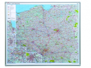 tablica mapa Polski drogowa, magnetyczna suchościeralna lakierowana 2x3 102x120m, magnetyczna, laminowana, rama aluminiowaKoszt transportu - zobacz szczegóły