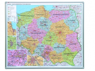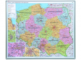 tablica mapa Polski administracyjna, suchościeralna na płycie miękkiej 2x3 102x120cm, rama aluminiowa Koszt transportu - zobacz szczegóły